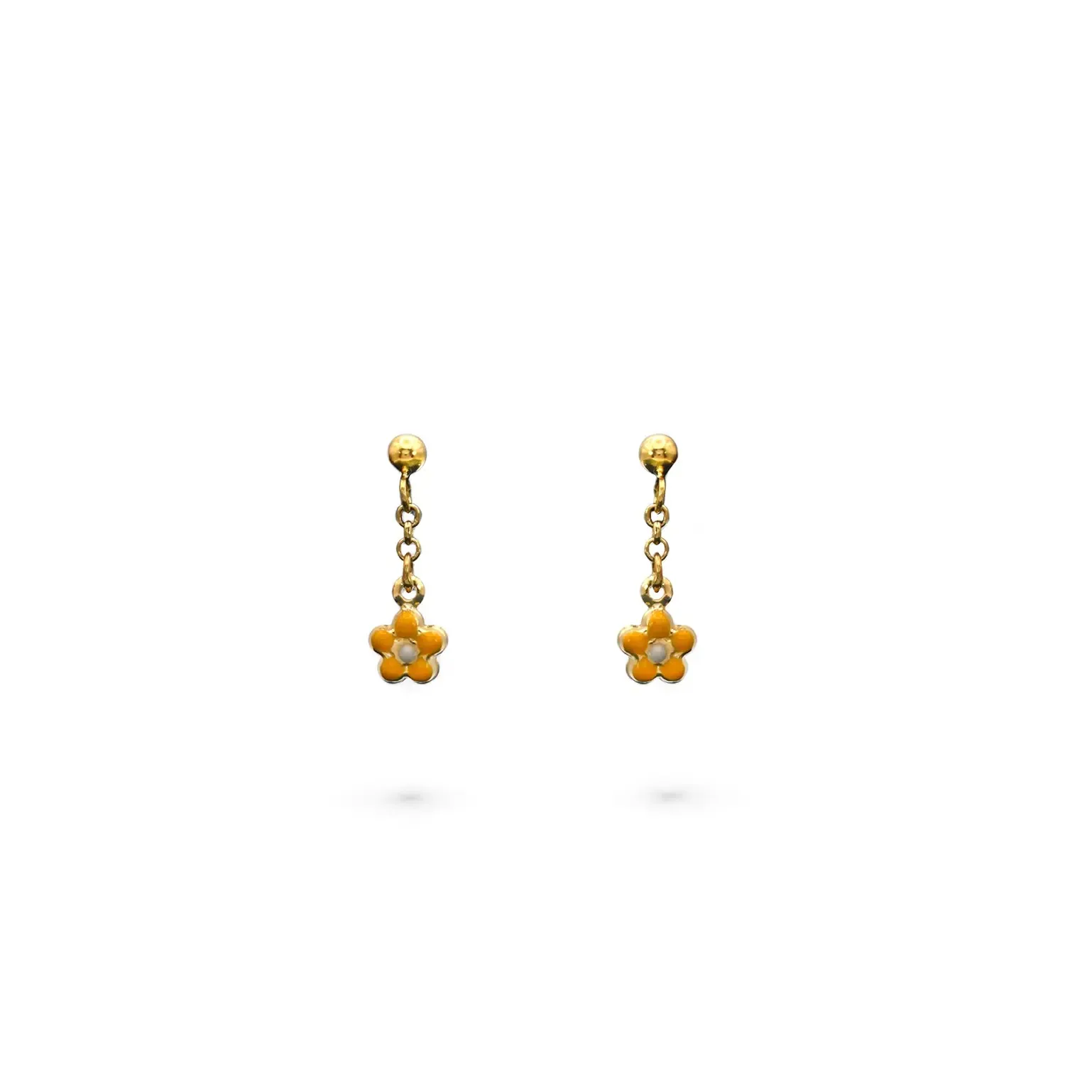 Pendientes de flor esmaltada en oro amarillo de 18 kt | 1,5 cm
