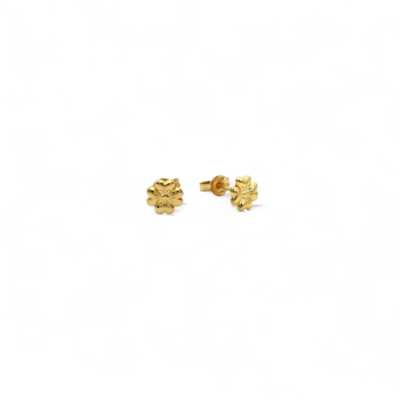 Pendientes de trébol de cuatro hojas pulidos en oro amarillo de 18 kt