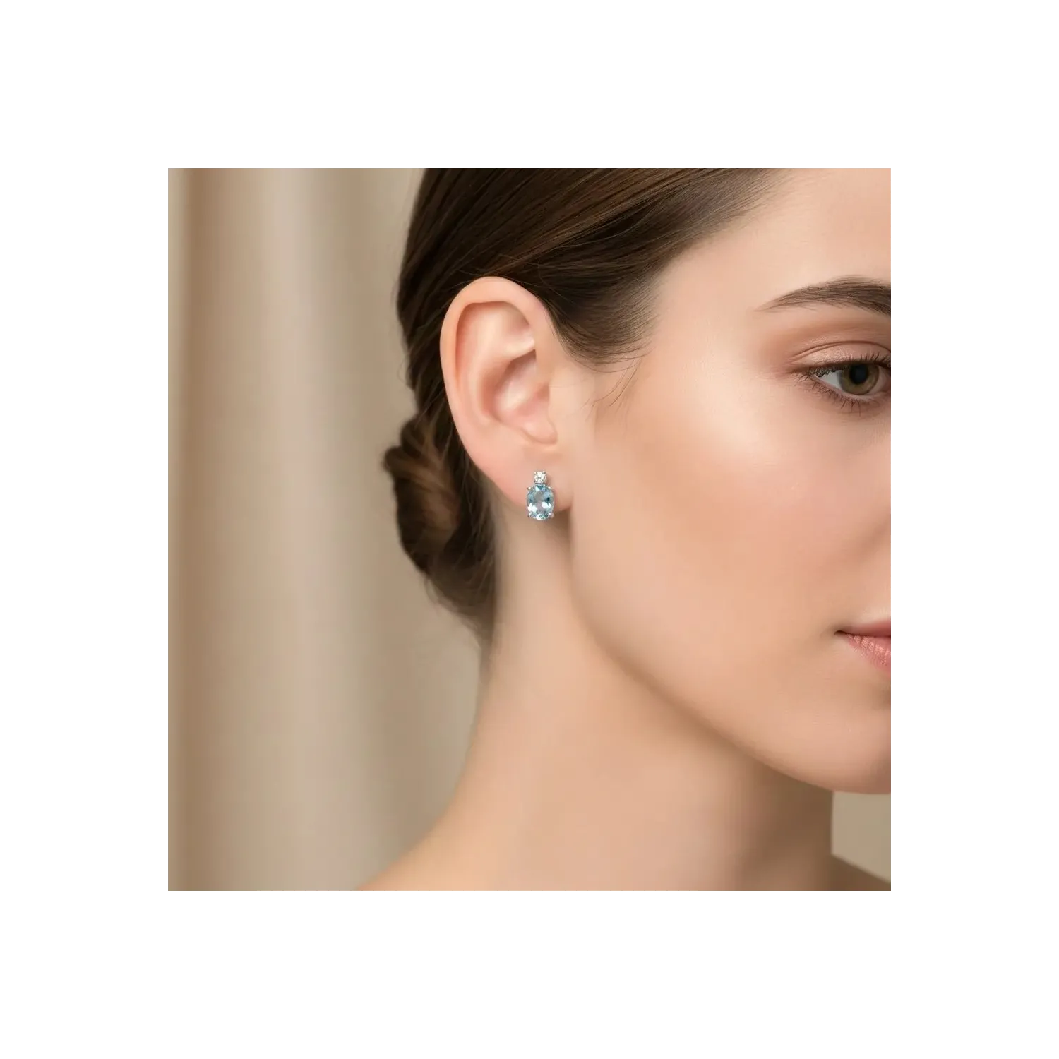 Pendientes de oro blanco de 18 kt con aguamarinas ovaladas de 2,13 ct y diamantes