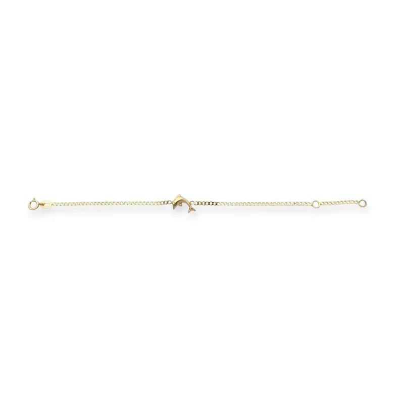 Pulsera de bebé/niño con delfín pulido en oro amarillo de 18 quilates