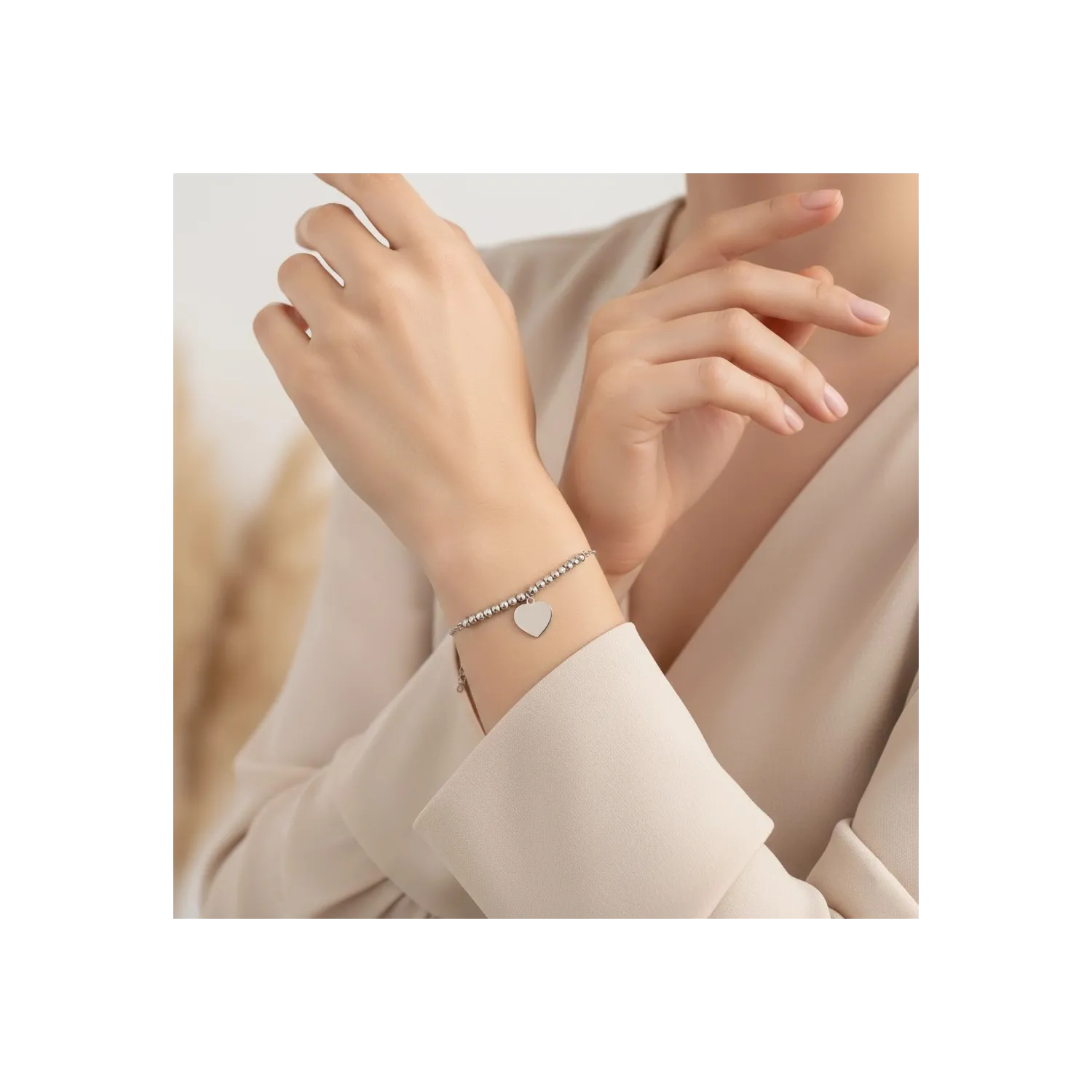 Pulsera de oro blanco de 18 kt con esferas y charm de corazón | 19 cm