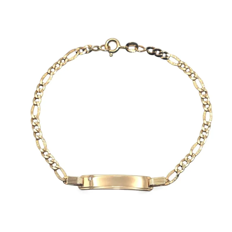 Pulsera de oro amarillo de 18kt con etiqueta y diamante