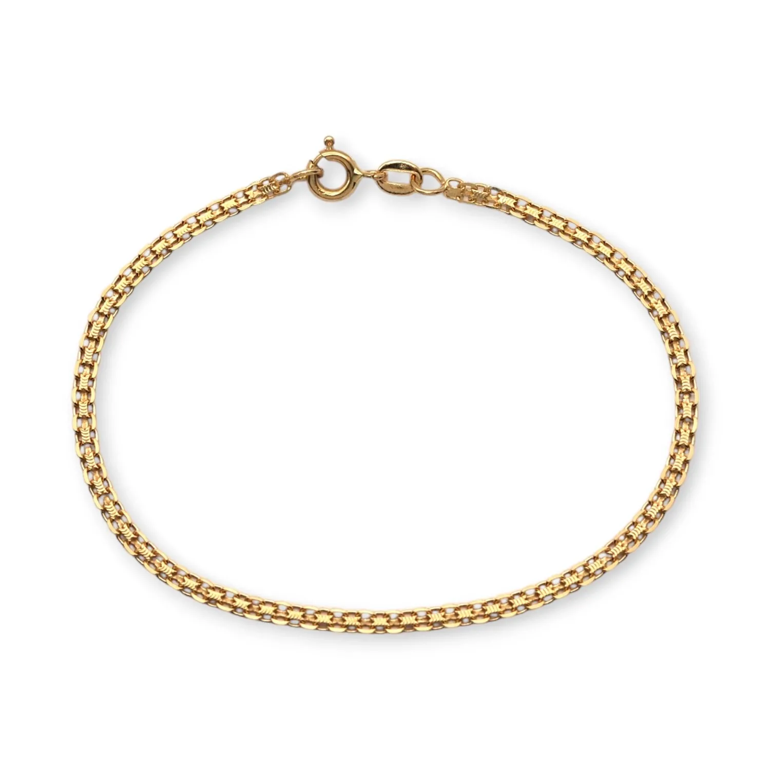Pulseras Pulsera de eslabones alternos en oro amarillo br0005 154,00 € Pulsera junior en oro amarillo de 18kt. con puntada alterna Largo de la pulsera 14 cm. Oro amarillo de 18kt. gramo. 1.1 Añadir al carrito