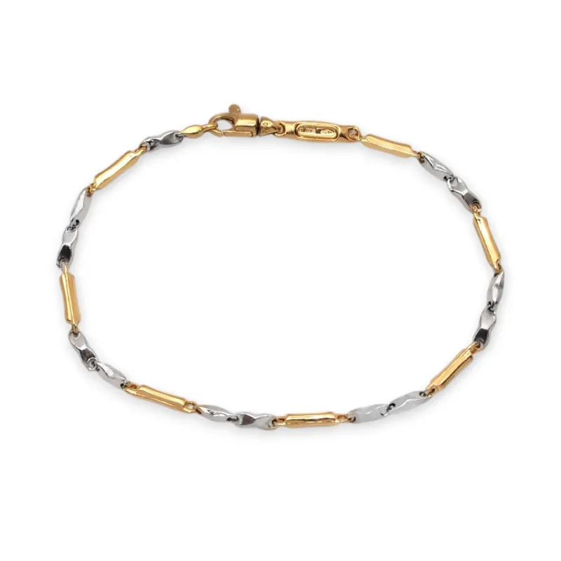Pulseras Pulsera de oro blanco y amarillo de 18 kt de 21 cm br0024 1.050,00 € Pulsera de oro blanco y amarillo de 18 kt, 21 cm de largo Añadir al carrito