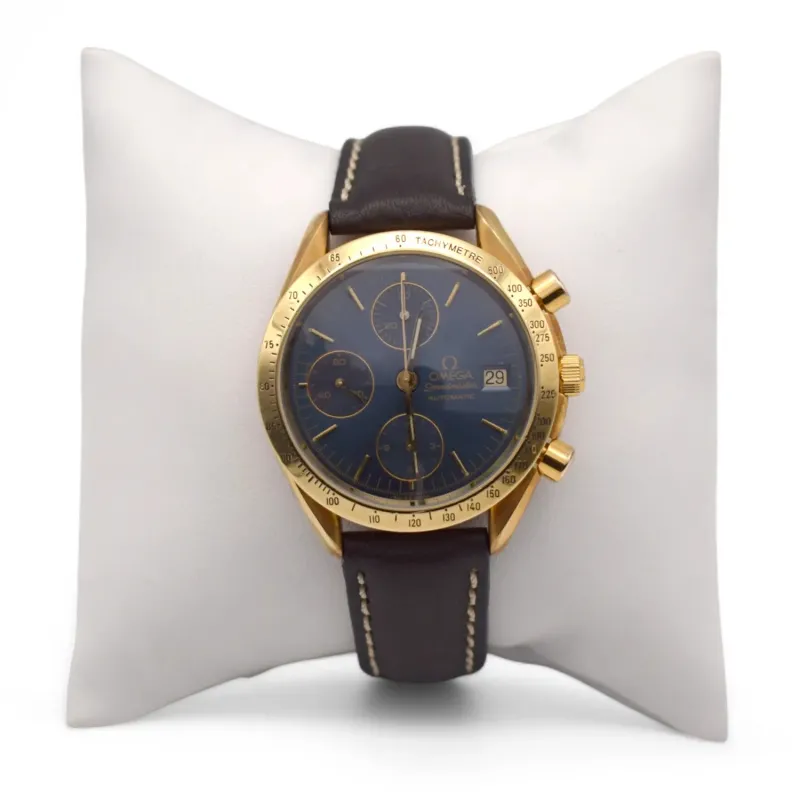 El Speedmaster Automatic en oro, un modelo icónico de Omega, que se propone aquí es un cronógrafo de colección que data de 1992 y cuenta con una caja de 39 mm. Este reloj representa la cumbre de la relojería suiza, con su caja de oro, movimiento automático y función de cronógrafo. Perfecto para los amantes del lujo vintage y aquellos que buscan una pieza de la historia de la relojería, en un tamaño de caja más compacto.