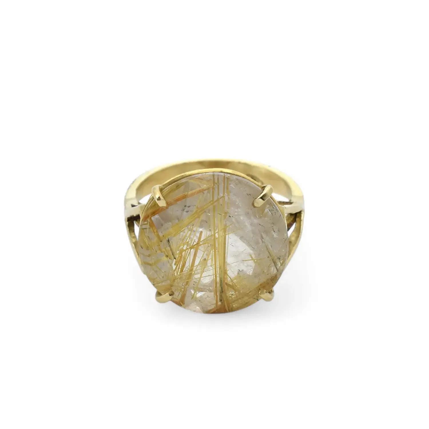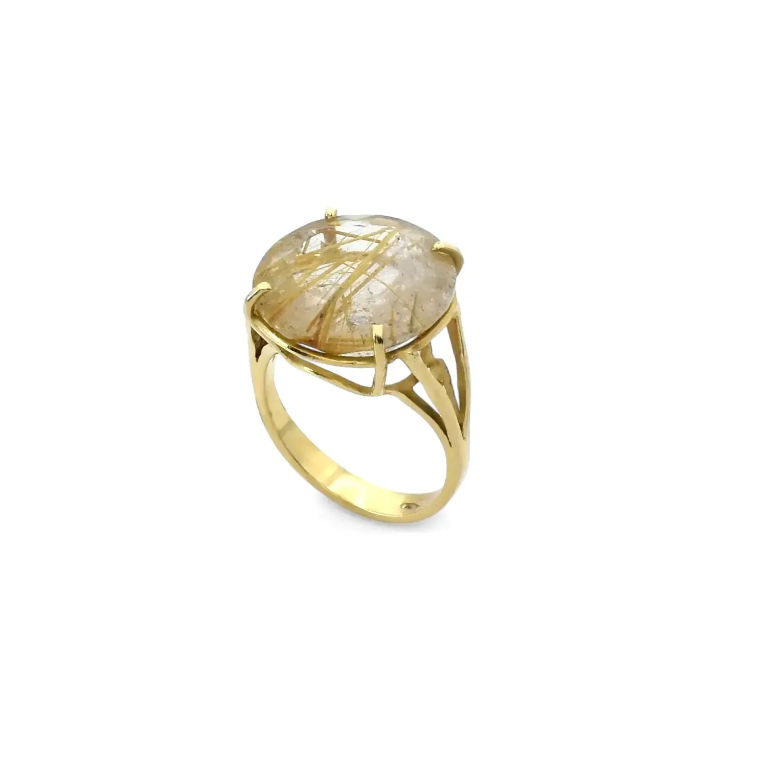 Anello in oro giallo 18kt. con quarzo rutilato incastonato a quattro griffe