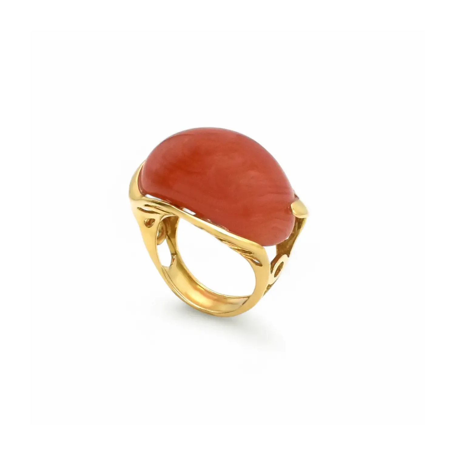 Anello in oro giallo 18kt. con corniola taglio cabochon
