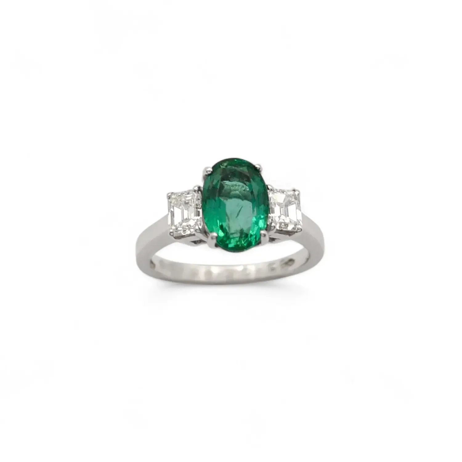 Anello in oro bianco con smeraldo ovale e diamanti