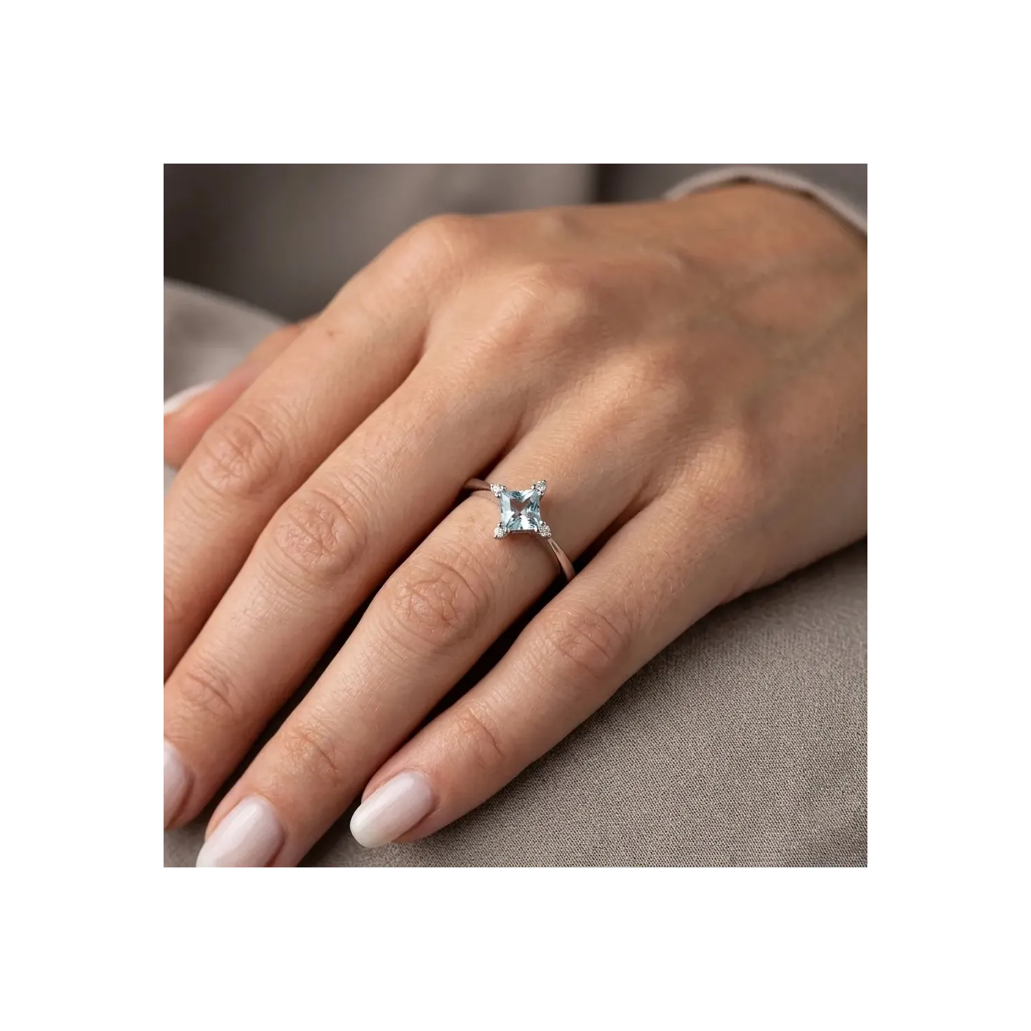 Anello "Light Breeze" in Oro Bianco 18kt con Acquamarina Princess e Diamanti