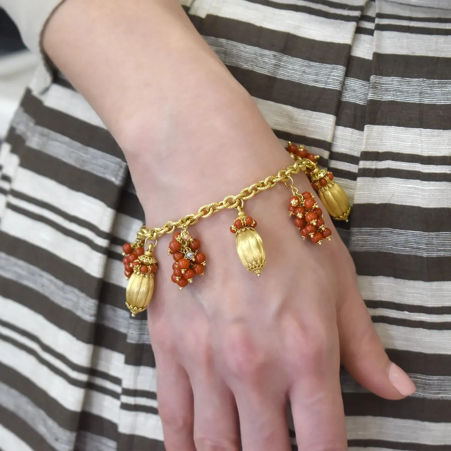 Bracciale Oro 18kt Satinato e Corallo Rosso a Grappoli