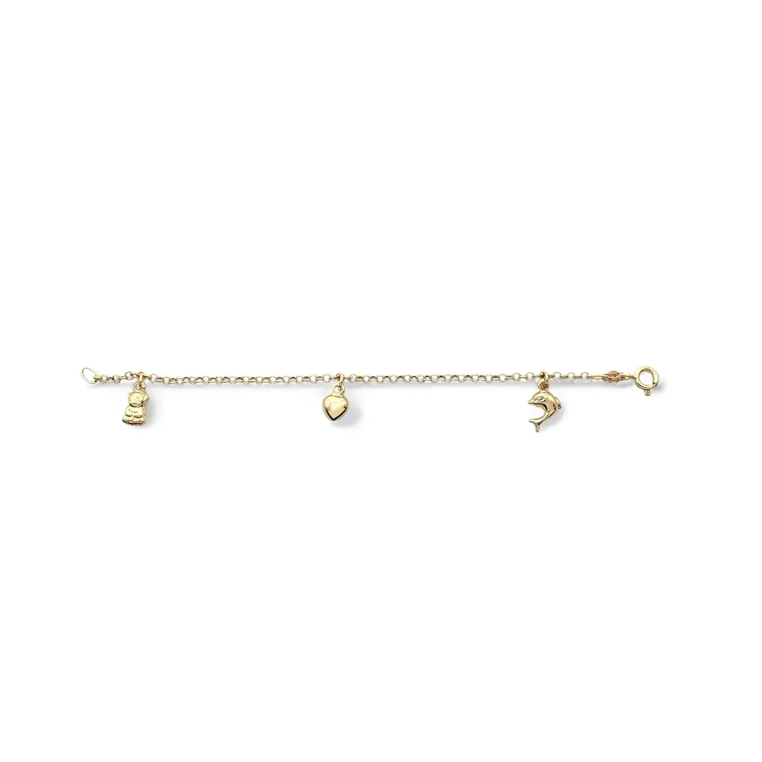 Bracciale Bambini Ciondoli Orsetto Cuore Delfino Oro Giallo 18kt
