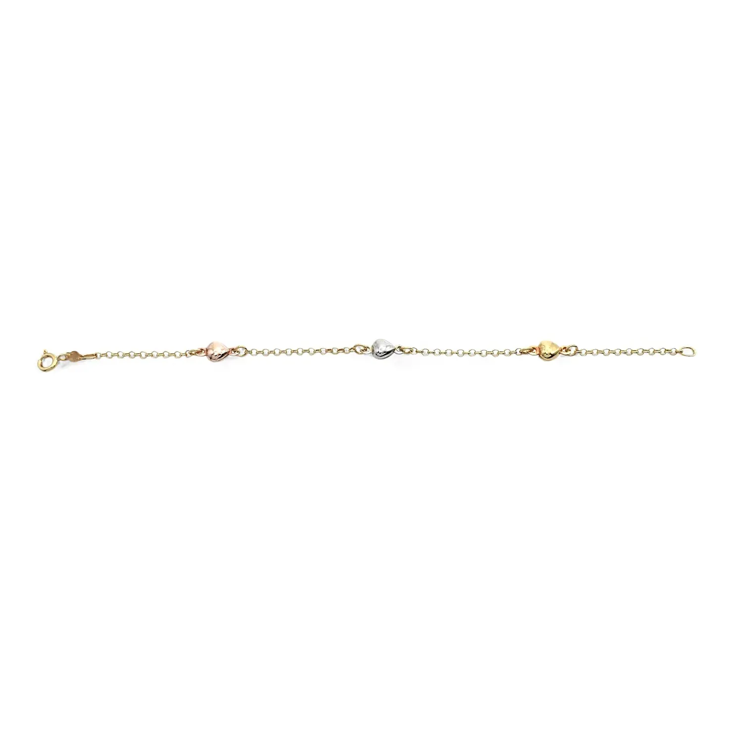 Bracciale in Oro 18kt con Cuori Tricolore | 18 cm