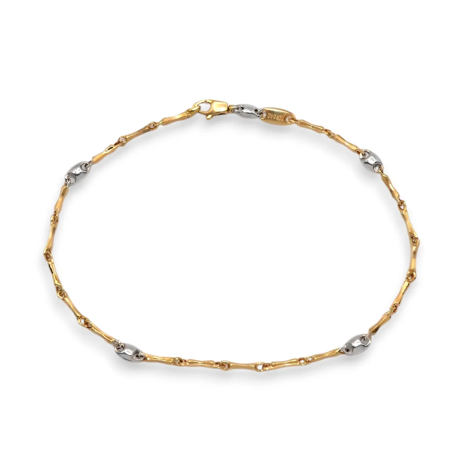 Bracciali Bracciale in oro giallo e bianco maglia chicco di riso br0018 462,00 € Bracciale in oro giallo e bianco maglia chicco di riso Oro giallo e bianco 18kt. gr.3.3 Lunghezza 21 cm. Aggiungi al carrello