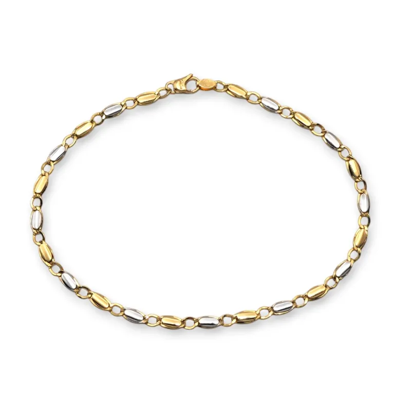 Bracciali Bracciale in oro giallo e bianco maglia chicco di riso br0018 462,00 € Bracciale in oro giallo e bianco maglia chicco di riso Oro giallo e bianco 18kt. gr.3.3 Lunghezza 21 cm. Aggiungi al carrello