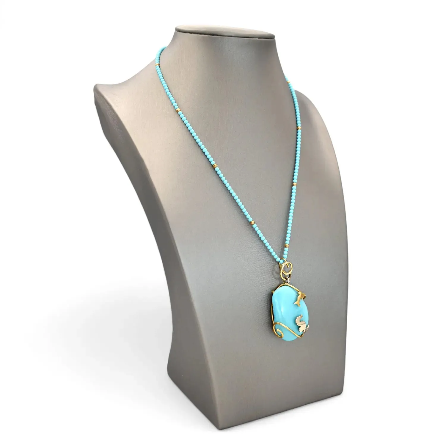 Immergiti nell'eleganza ispirata al mare con questa esclusiva collana Stella Maris, una composizione raffinata di turchesi naturali e pregiato oro giallo 18 carati.