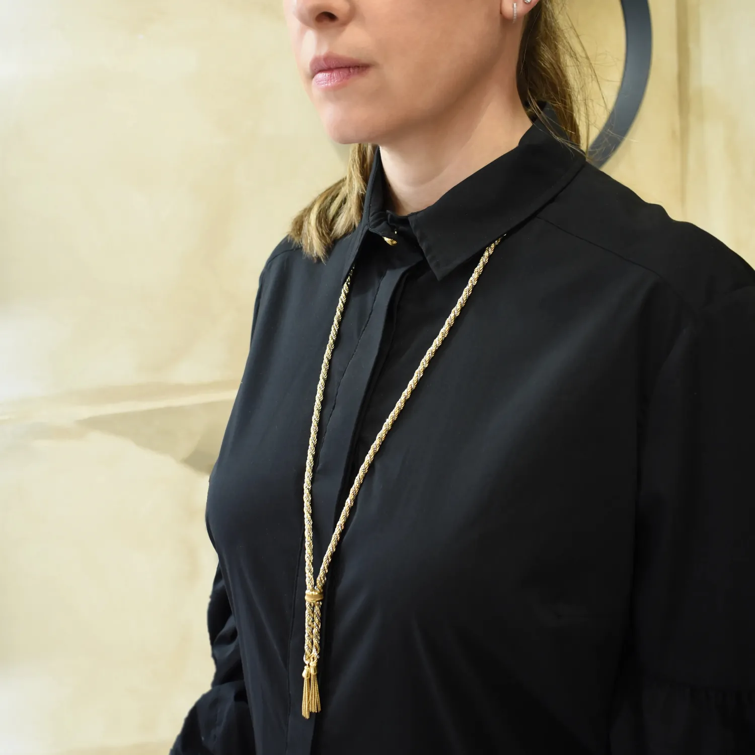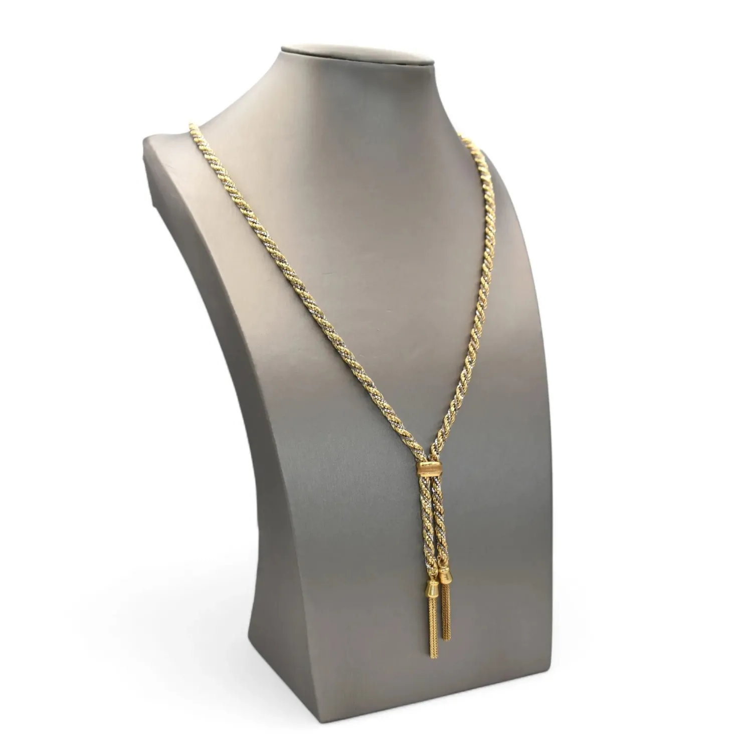 Collana Lunga 80cm Oro Giallo e Bianco Torchon e Veneziana