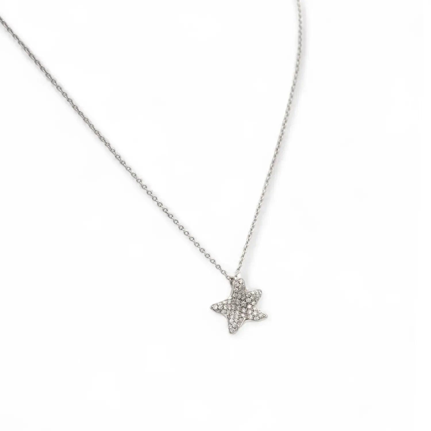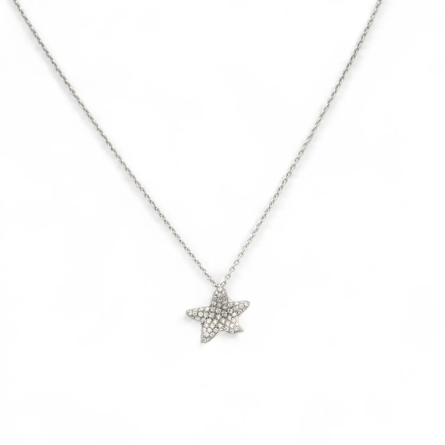 Collana in oro bianco 18kt con pendente stella e pavé di diamanti taglio brillante