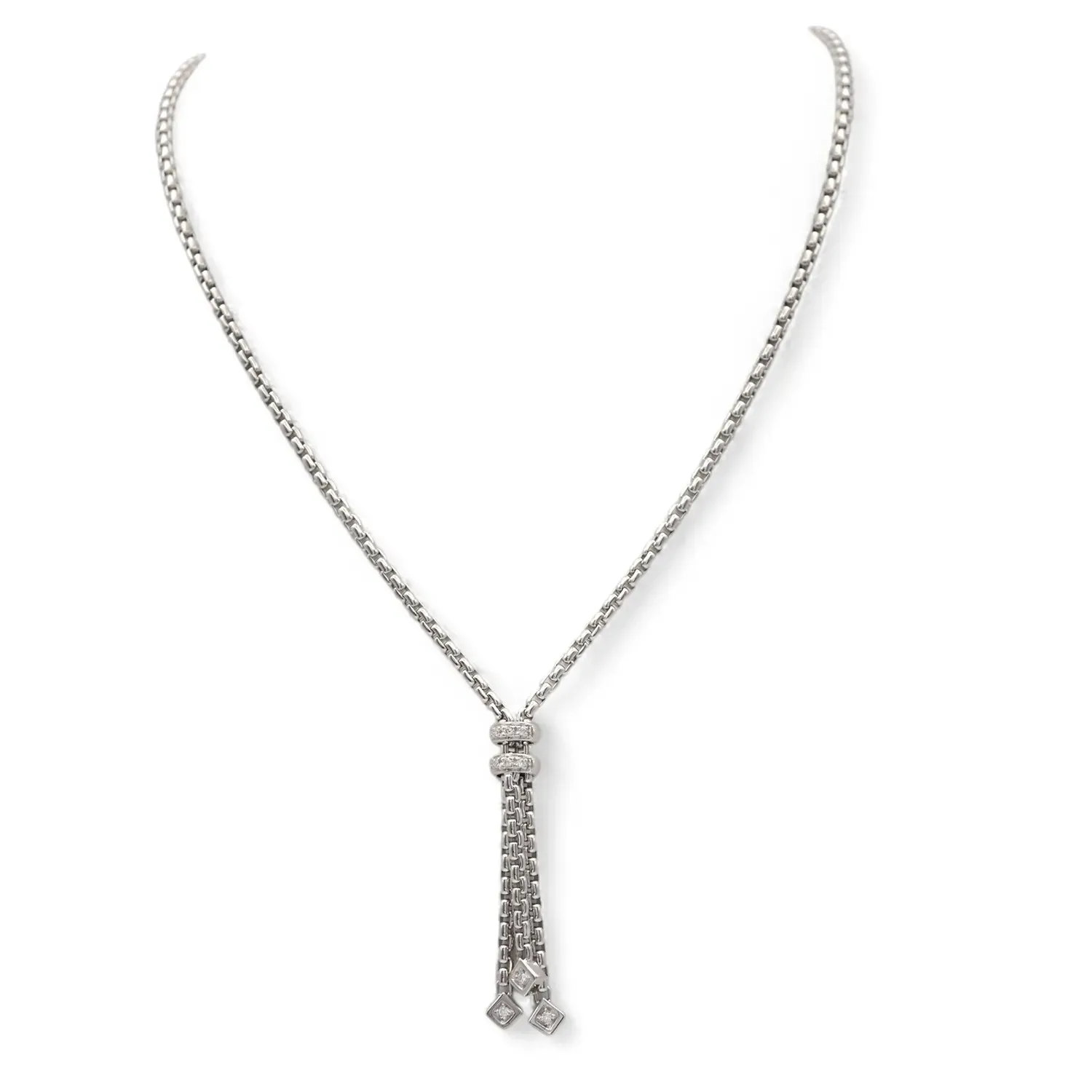 Collana in oro bianco 18kt maglia coreana con pendente e diamanti