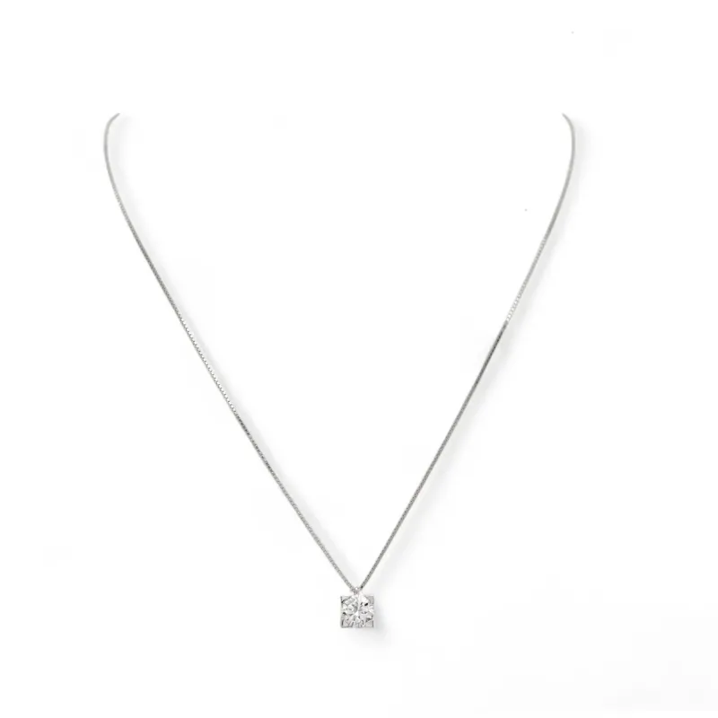 Collana in oro bianco punto luce castone quadrato ct.0.99
