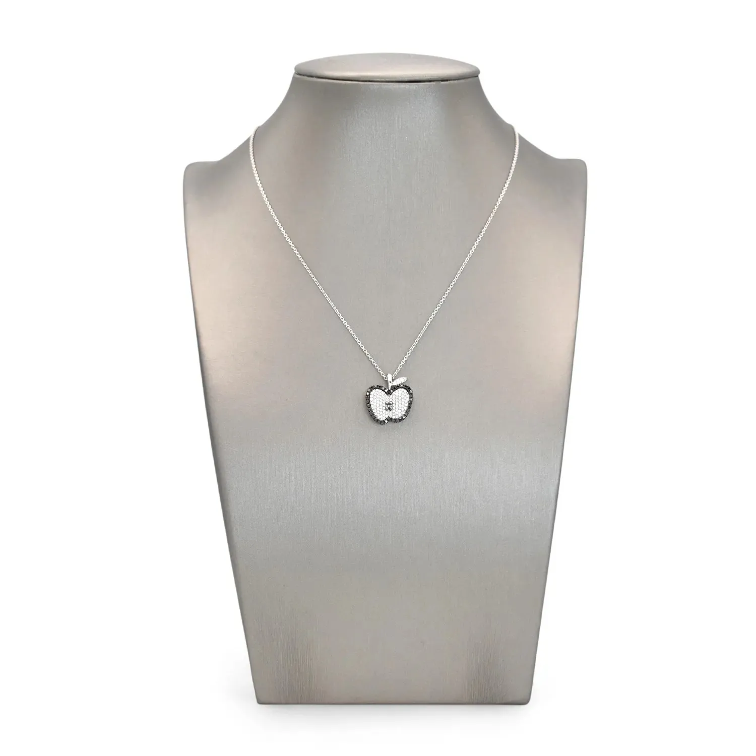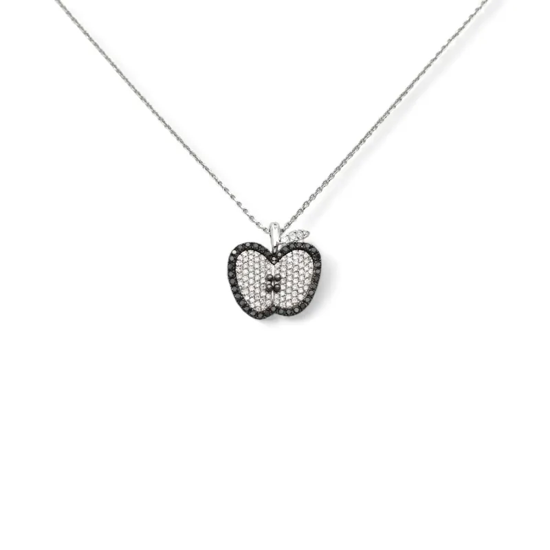 Collana con Pendente "Mela" in Oro Bianco 18kt, Diamanti Bianchi e Neri