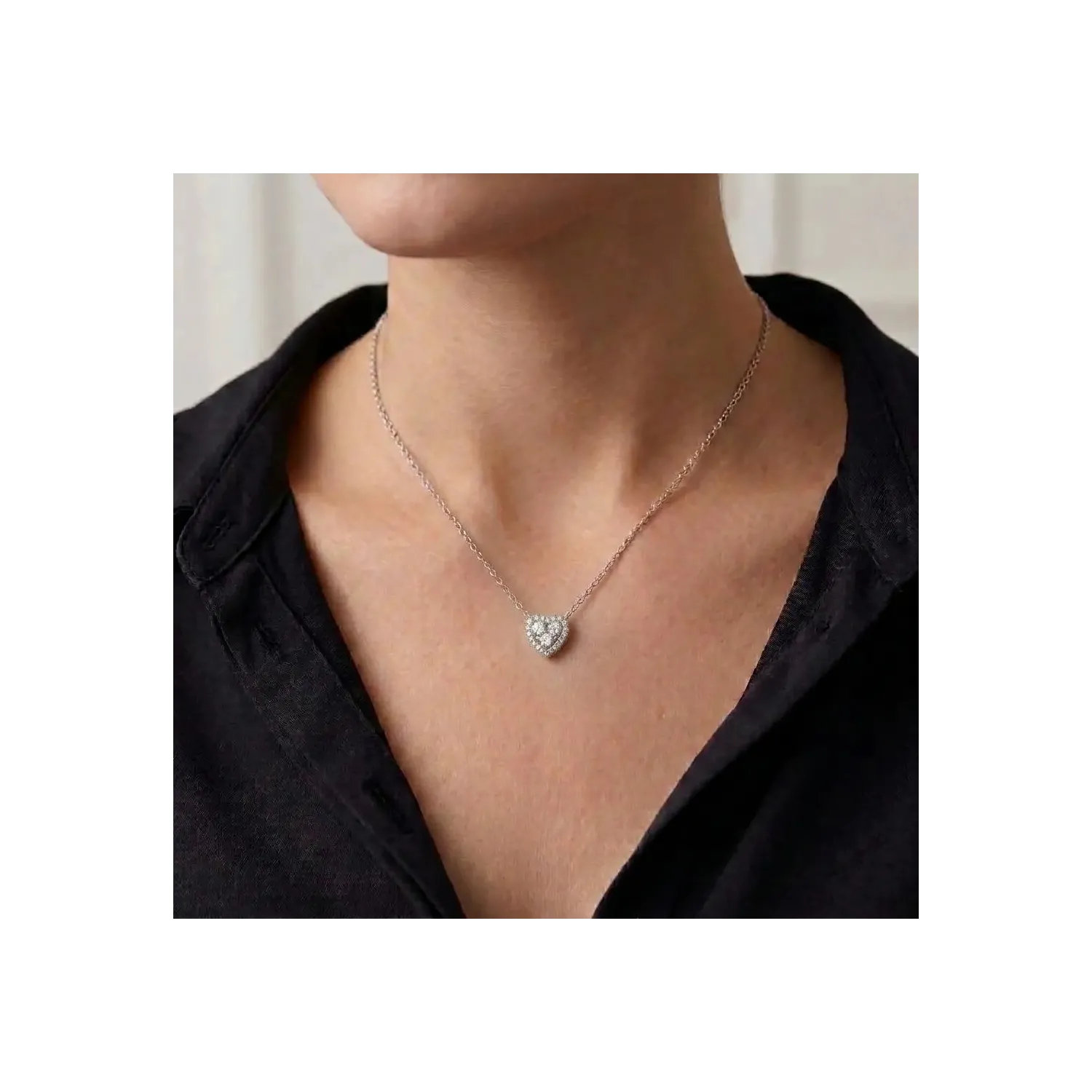 Questa incantevole collana in oro bianco 18kt celebra l'amore con un pendente a forma di cuore dal design luminoso e intramontabile. La superficie del cuore è interamente impreziosita da diamanti taglio brillante per una caratura complessiva di 0,56 ct, incastonati con estrema precisione per creare un riflesso continuo e scintillante.