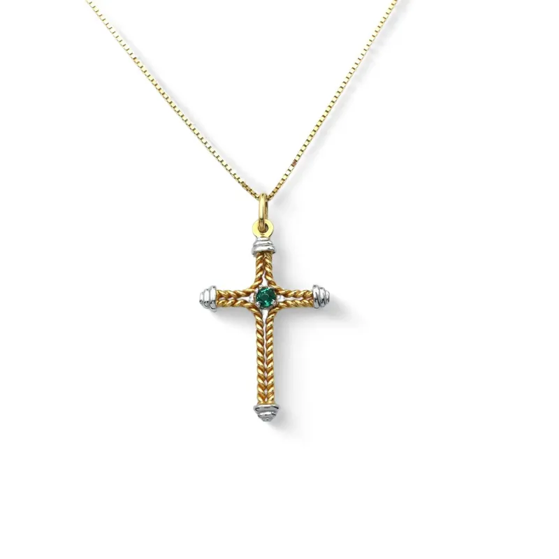 Collana con Croce "Faith & Light" in Oro Bicolore e Smeraldo 0,07 ct