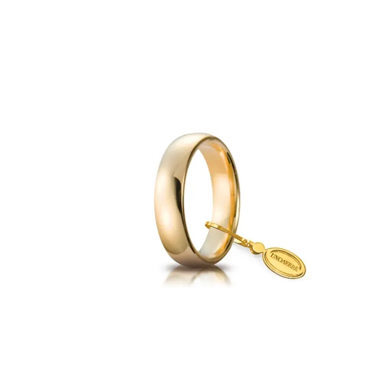 Fedi Fede Cerchi di Luce mm.5.0 in oro giallo UnoAerre 050AFC1110000 Fede nuziale "Cerchio di Luce" in oro 750. Gr da 4,30 a 6,20 - Mm 5,00 Audace e decisivo come un "sì", questo anello si distingue per la purezza e la perfezione delle sue linee. Moderno e sofisticato. Vedi