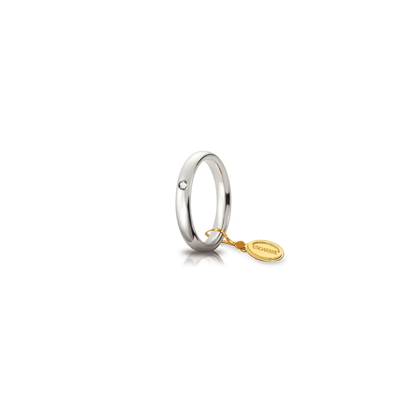 Fedi Fede Cerchi di Luce mm.2.5 in oro bianco con diamante UnoAerre 025AFC0020010 Fede nuziale "Cerchio di Luce" in oro 750 con diamante di taglio brillante ct. 0,03. Gr da 3,70 a 5,10 - Mm 2,50 Una fede unica e straordinaria come il sentimento e l'amore che accompagnano questo grande passo. Vedi
