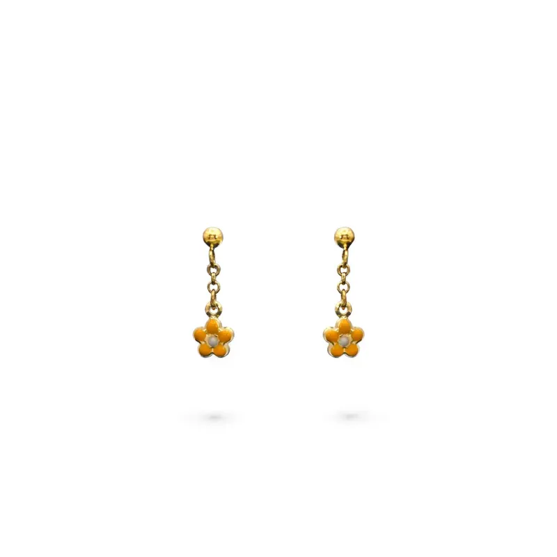 Orecchini Fiore Smalto Oro Giallo 18kt | 1,5cm