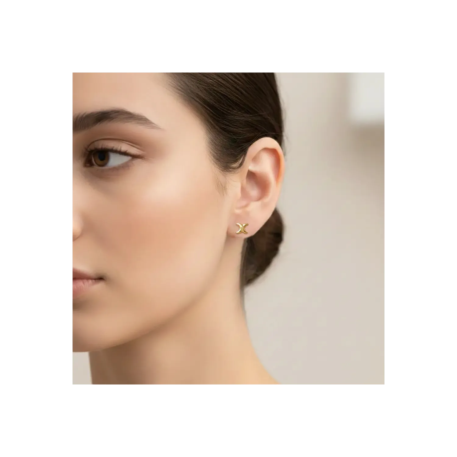 Orecchini a Lobo "X" Stilizzata Oro Giallo 18kt | Misura 1cm