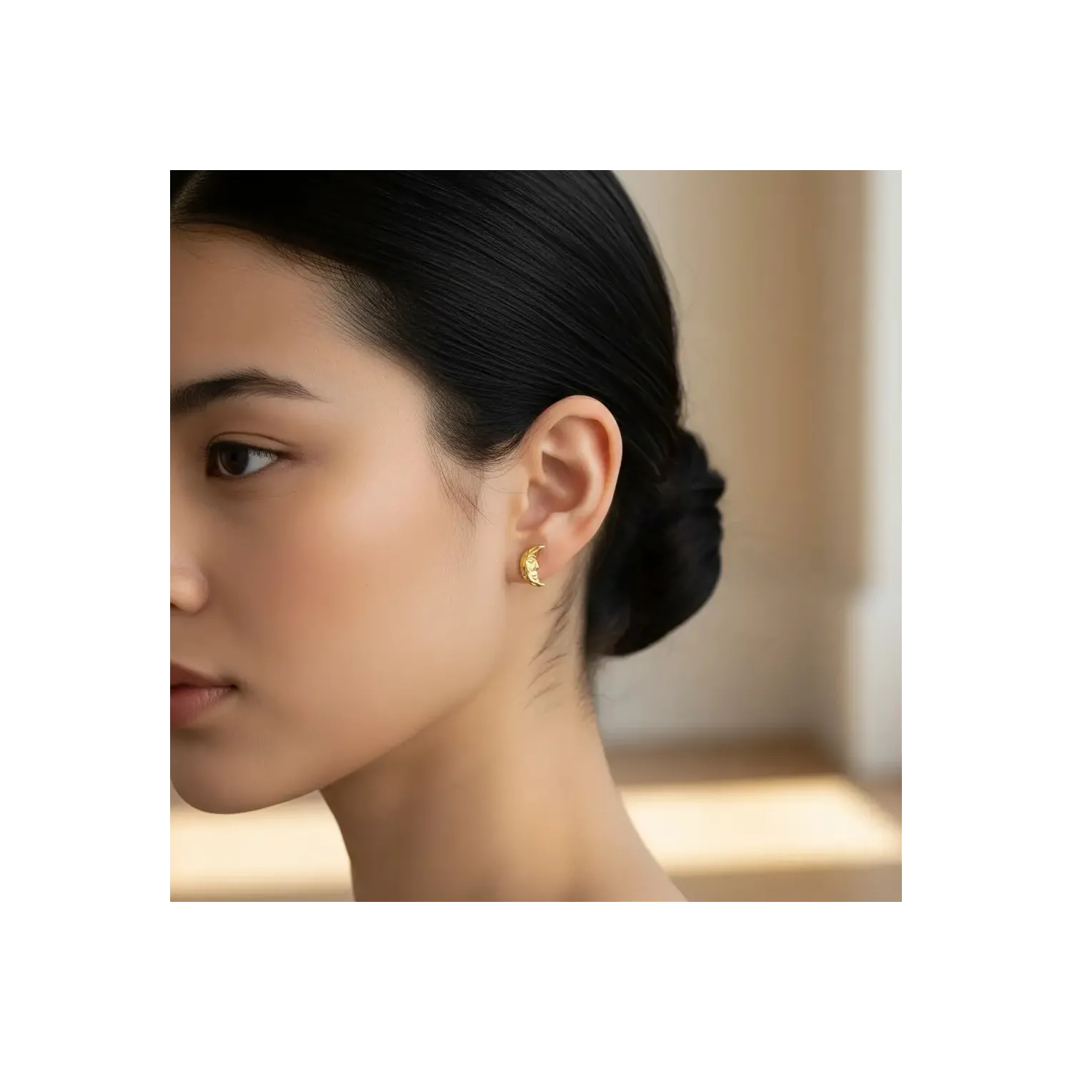 Questi affascinanti Orecchini a Lobo in Oro Giallo 18kt sono un gioiello dal design evocativo e un tocco di misticismo. Ogni orecchino presenta una piccola e graziosa mezza luna stilizzata, con un dettaglio che ne raffigura un delicato viso, come la "luna con volto" delle leggende. La finitura lucida dell'oro giallo ne esalta la brillantezza. Con una lunghezza di circa 1 cm e un peso piuma di 0,9 gr, sono estremamente leggeri e comodi da indossare quotidianamente. Perfetti per chi ama i simboli celesti e i gioielli discreti ma ricchi di fascino.
