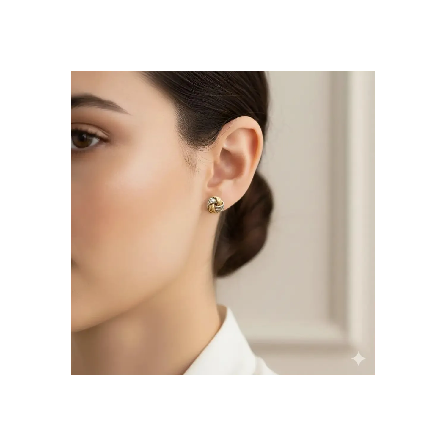 Questi raffinati Orecchini a Lobo in Oro Bicolore 18kt sono un gioiello dal design sofisticato e un simbolismo intrinseco di legame. Presentano una forma a nodo avvolgente, realizzata intrecciando sapientemente fili di lucido oro giallo e brillante oro bianco, entrambi con una distintiva lavorazione a diamantatura o satinatura che ne esalta la texture e la brillantezza. Con una misura di circa 1 cm e un peso di 2,8 gr, sono solidi ma confortevoli, ideali per aggiungere un tocco di eleganza moderna e un significato profondo al tuo look, perfetti per ogni occasione.