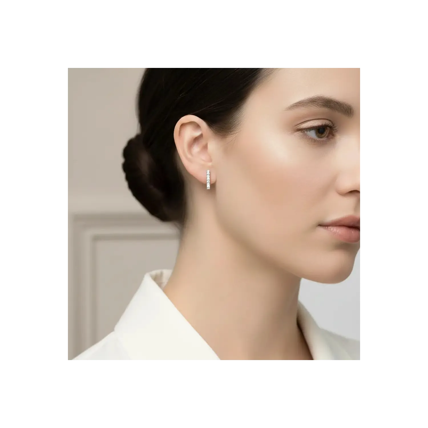 Questi eleganti Orecchini a Lobo in Oro Bianco 18kt sono un gioiello dal design moderno e dalla brillantezza raffinata. La loro struttura distintiva è composta da tre elementi di forma geometrica angolare (come un pentagono) in oro bianco lucido, ciascuno impreziosito da luminosi zirconi bianchi incastonati. Gli elementi sono disposti in fila per creare una linea verticale che, una volta indossata, dona l'aspetto di una barretta scintillante. La purezza dell'oro bianco esalta la luce degli zirconi. Con una lunghezza di 1,5 cm e un peso di 1,5 gr, sono discreti ma di grande impatto, ideali per aggiungere un tocco di sofisticata luminosità al tuo look.