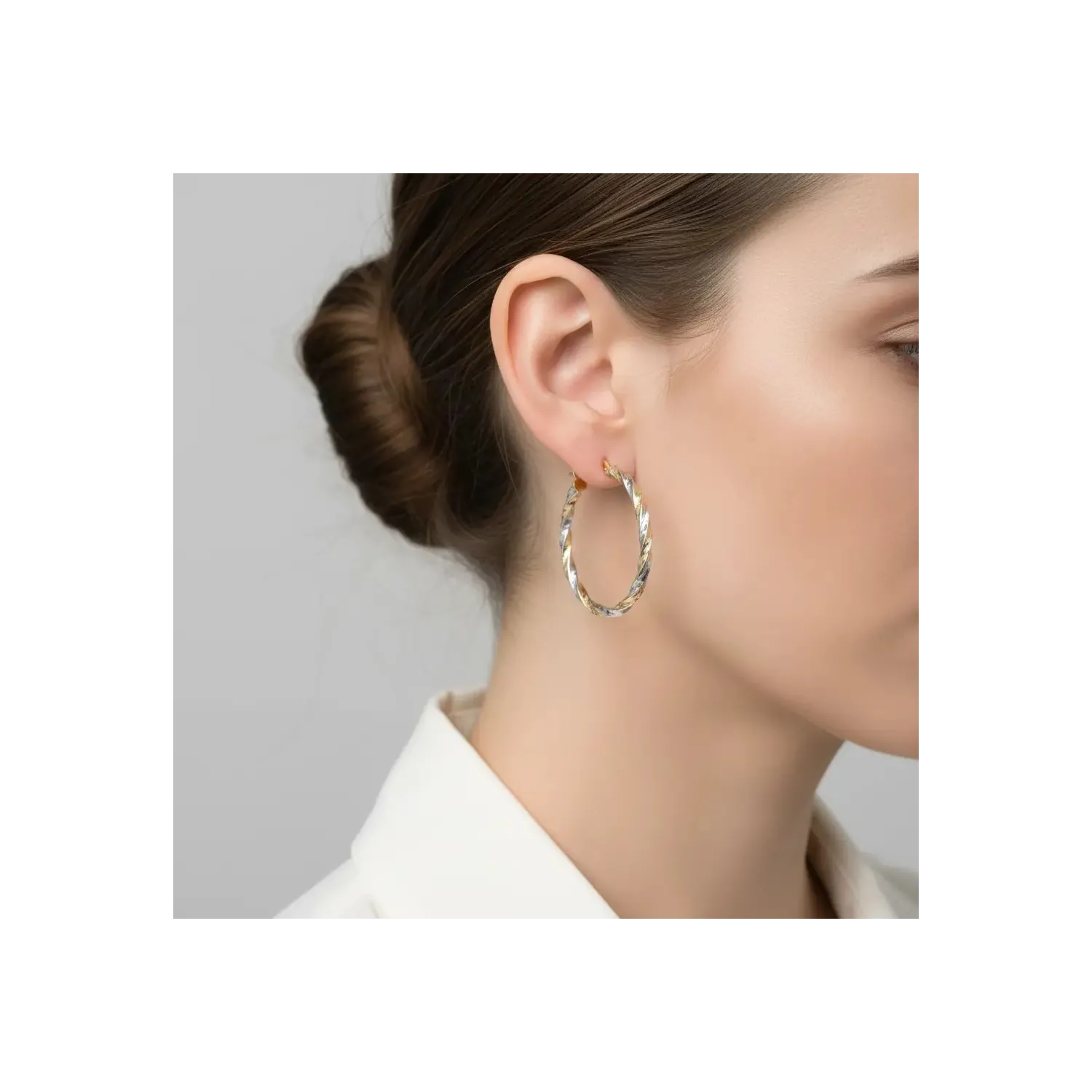 Orecchini a Cerchio Bicolore Ritorto Oro Giallo e Bianco 18kt