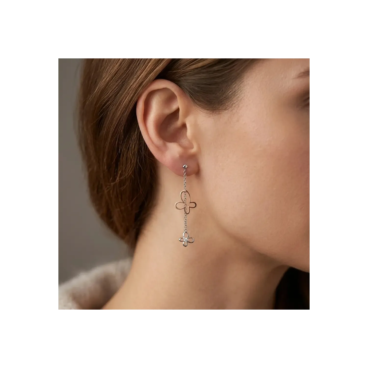 Orecchini Pendenti Farfalle in Oro Bianco e Rosa con Diamanti 0,10 ct