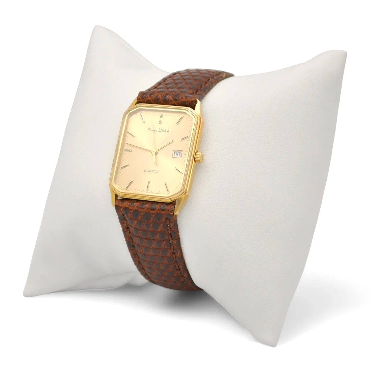 Splendido Philip Watch vintage in oro con cassa rettangolare, simbolo di raffinatezza e stile. Movimento al quarzo preciso e affidabile. Un gioiello per chi ama l'eleganza senza tempo.