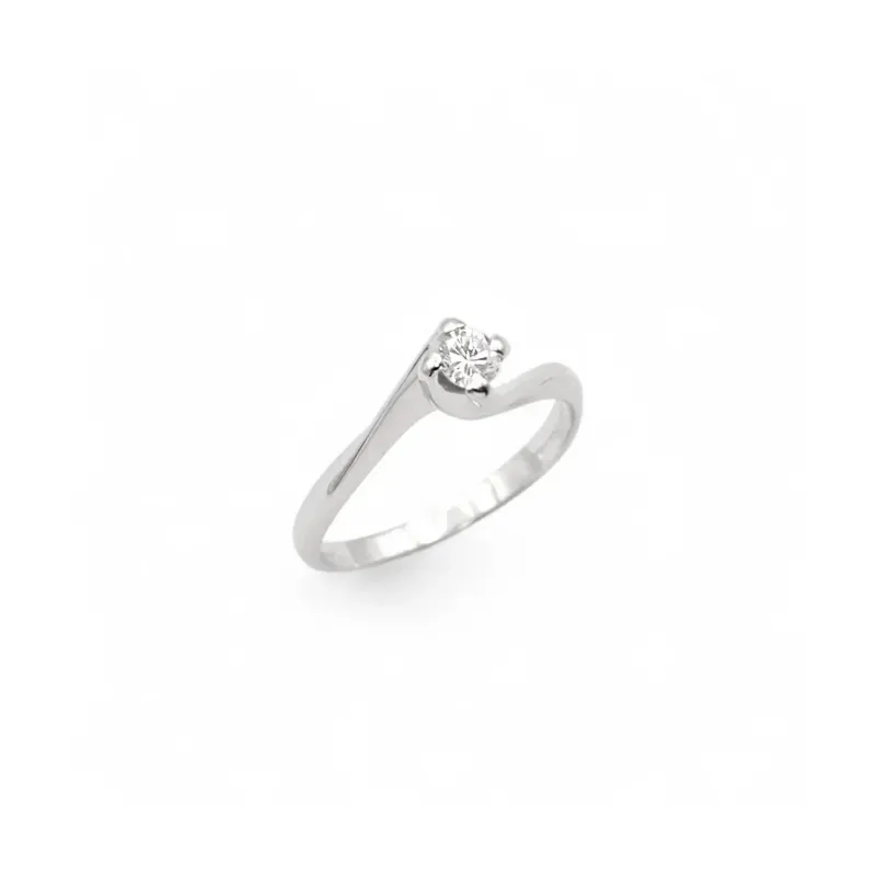 Anello solitario in oro bianco a quattro griffe ct.0.18