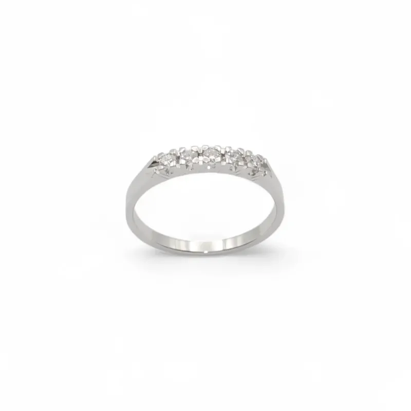 Anello veretta in oro bianco 18kt con cinque diamanti taglio brillante