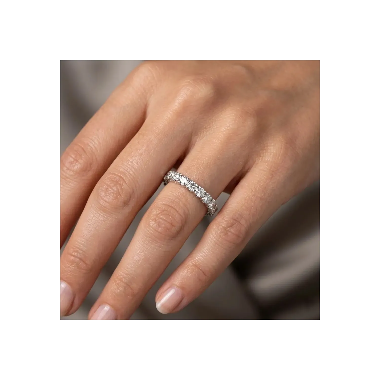 La particolarità di questo modello risiede nelle griffe tornite: una lavorazione di alta precisione che, oltre a garantire una tenuta sicura di ogni singola pietra, ne amplifica visivamente il diametro e la rifrazione luminosa. Con un peso di 3,30 grammi, l'anello offre un comfort eccezionale nonostante l'importante caratura. Un capolavoro di alta oreficeria italiana, perfetto come promessa d'amore eterno o per celebrare un traguardo indimenticabile.